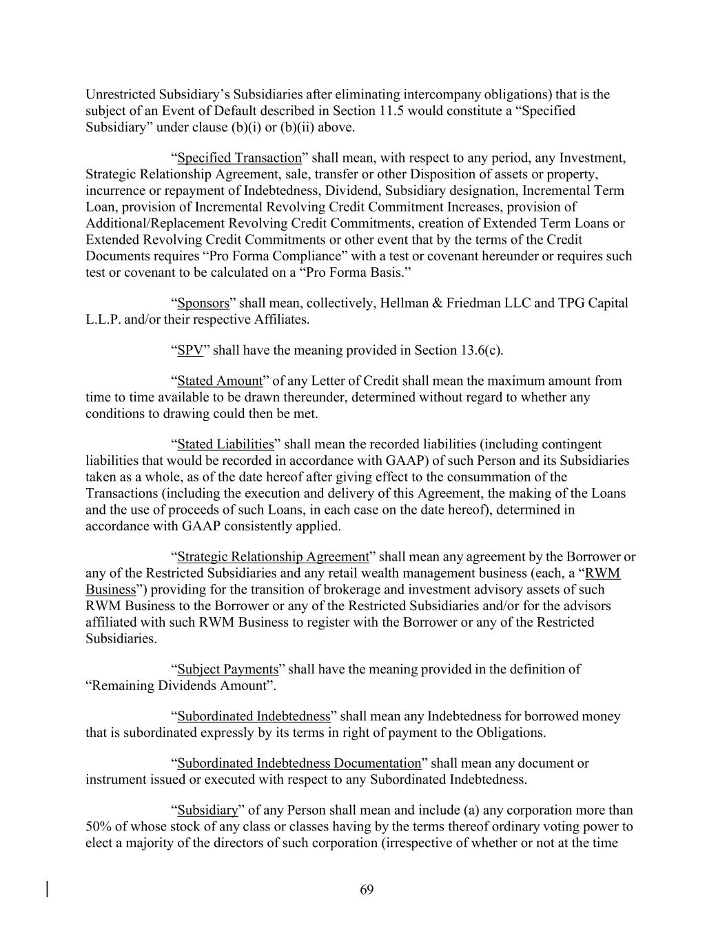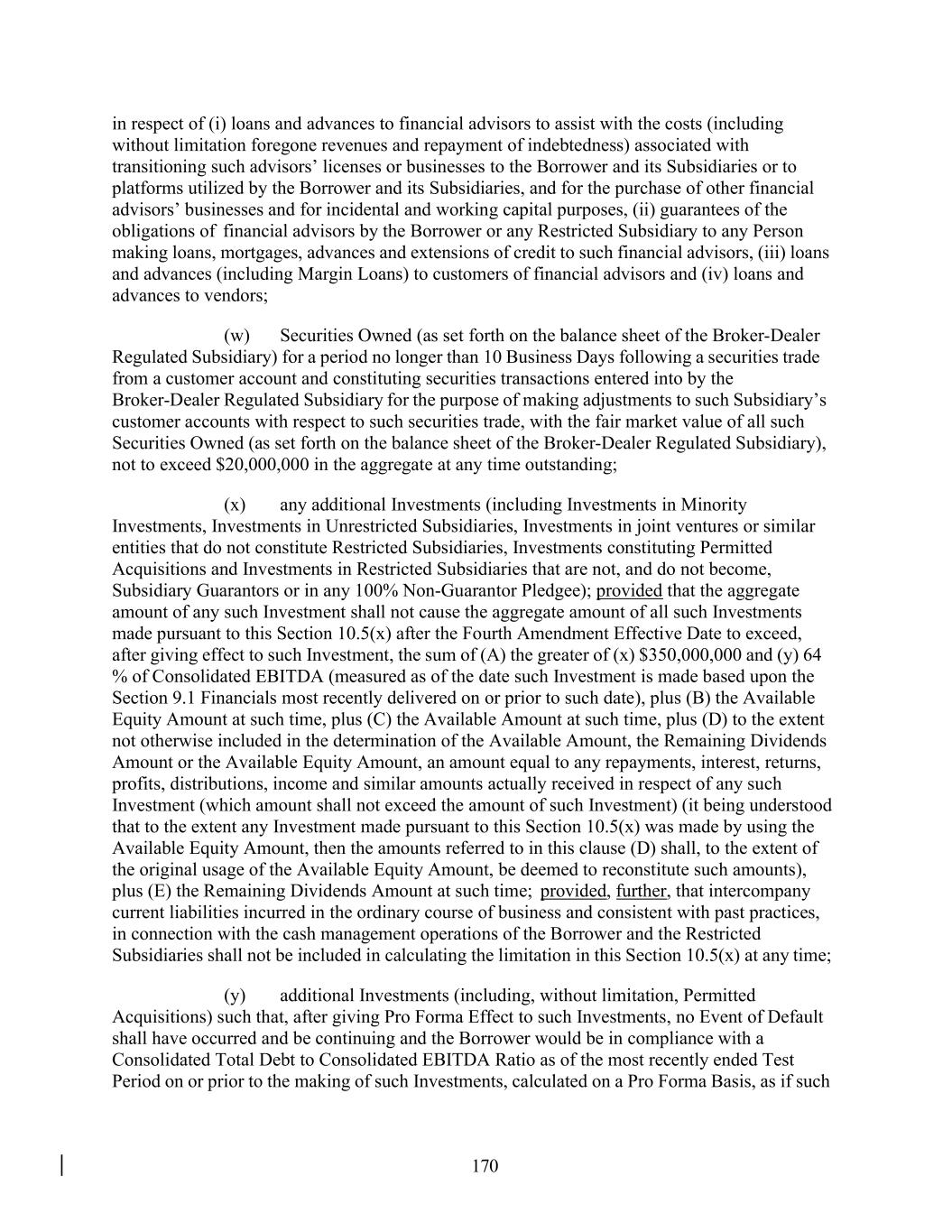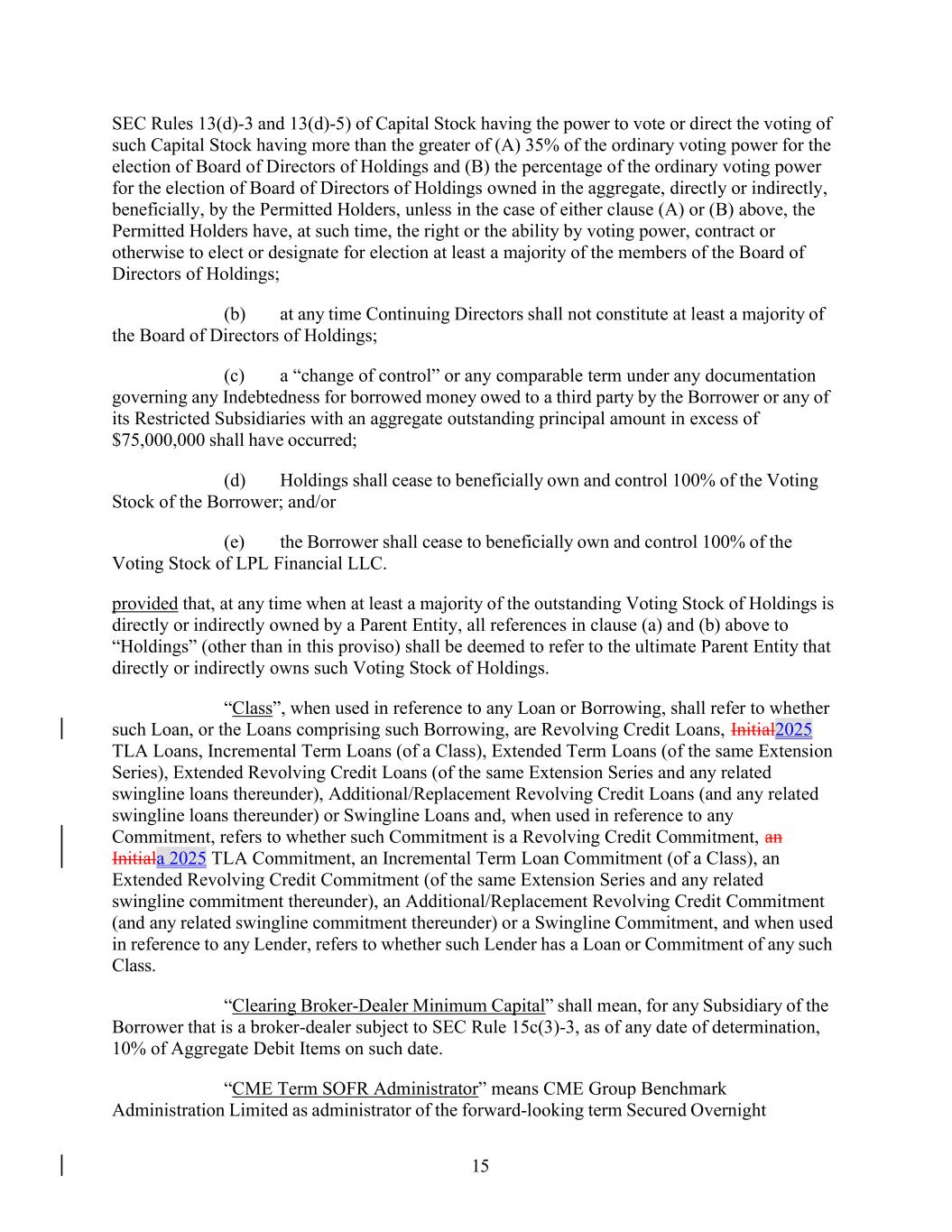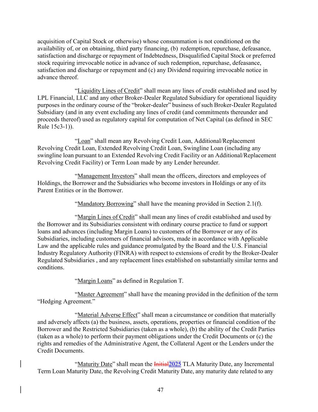 •execution of the Company’s capital management plans, including its compliance with the terms of the Company’s amended and restated credit agreement (the “Credit Agreement”), the committed revolving credit facility at our primary broker-dealer subsidiary, LPL Financial LLC (the “Broker-Dealer Revolving Credit Facility”), and the indentures governing the Company’s senior unsecured notes (the “Indentures”);